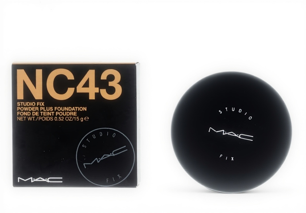 Le fond de teint poudre M.A.C Studio Fix en teinte NC43 allie une finition mate à un contrôle optimal des brillances. Sa formule inclut de la silice pour absorber les huiles cutanées et du talc pour une application plus lisse et moins réfléchissante, assurant un teint uniforme et naturel toute la journée.