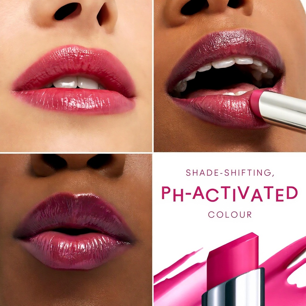 La teinte violet froid apporte une nuance légère, plus perceptible sur les lèvres claires ou naturelles. Sur les lèvres plus pigmentées, l’effet coloré peut être minimal, se limitant à un soin hydratant.