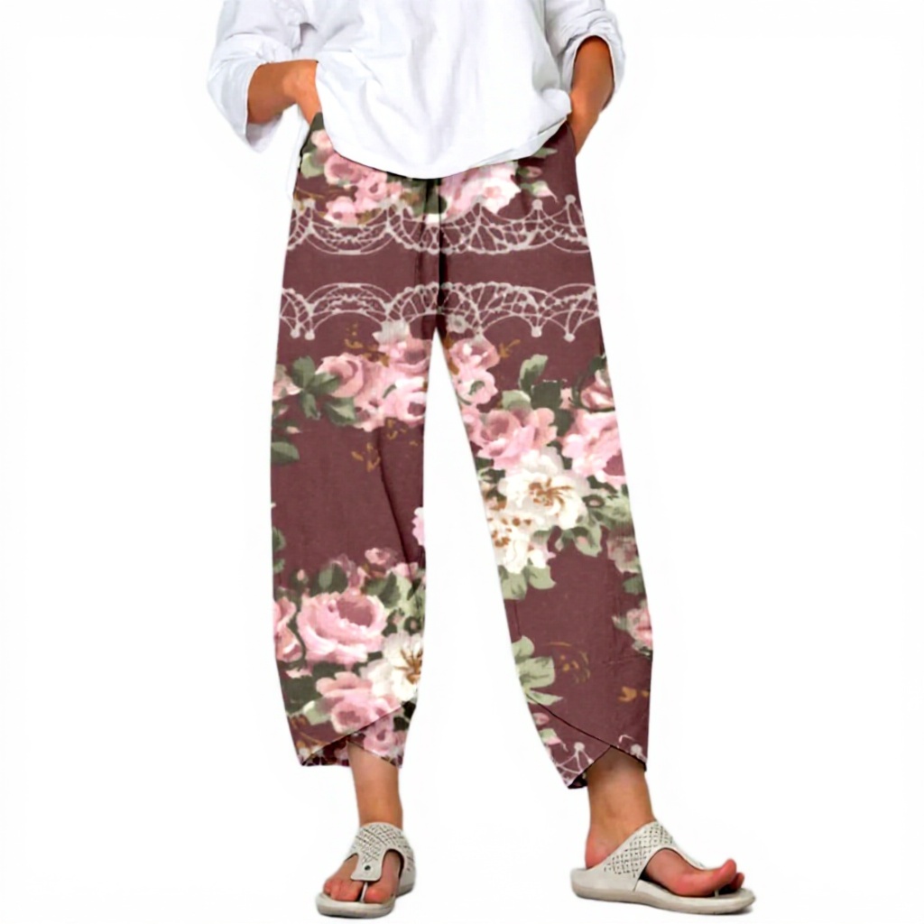 Le pantalon est disponible en tailles S à XXL et dans des coloris variés comme blanc, marine militaire, vin, bleu foncé et rose chaude. Fabriqué en coton, il est léger et facile d’entretien, conçu pour un port décontracté ou habillé selon l’occasion.